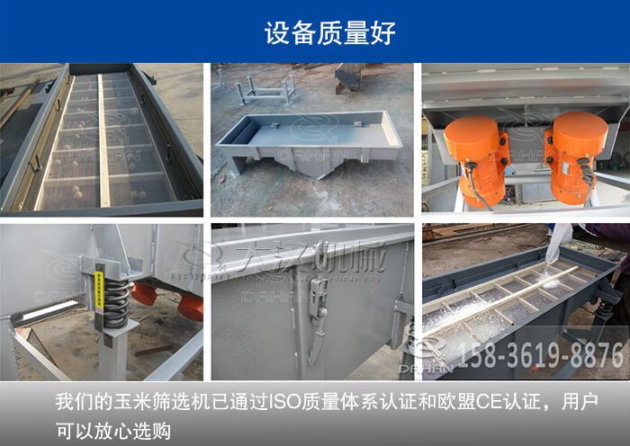 在玉米篩選機選材開始,到設備送到用戶手中為止,我們將高品質(zhì)滲透在每一個細節(jié)內(nèi),一直致力于把好的設備和好的施工工藝介紹給用戶,保證用戶利益大化,我們的玉米篩選機選用厚度在10-12mm之間的板材,設備生產(chǎn)過程中優(yōu)嚴格的質(zhì)量管理,能夠極大地提高設備的品質(zhì),穩(wěn)定設備的性能,目前,我們的玉米篩選機已通過ISO質(zhì)量體系認證和歐盟CE認證,用戶可以放心選購。