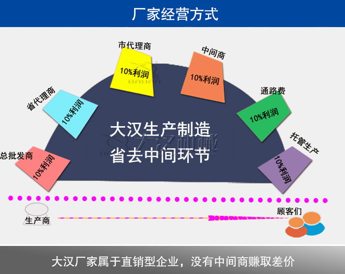 大漢公司位于河南省新鄉(xiāng)市,消費水平低,人工、場地等費用降低,且廠家會從消費者角度考慮,一般設(shè)備的報價也不會太高,遠低于北上廣等一線城市。