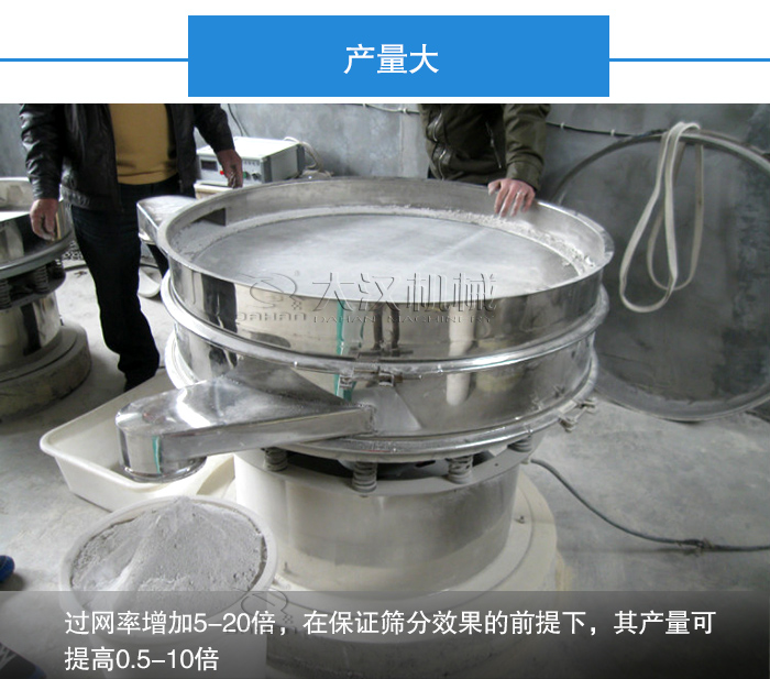 由于超聲波篩分系統(tǒng)的設(shè)計(jì),我們的設(shè)備比不安裝超聲波的振動(dòng)篩過網(wǎng)率增加5-20倍,在保證篩分效果的前提下,其產(chǎn)量可提高0.5-10倍。