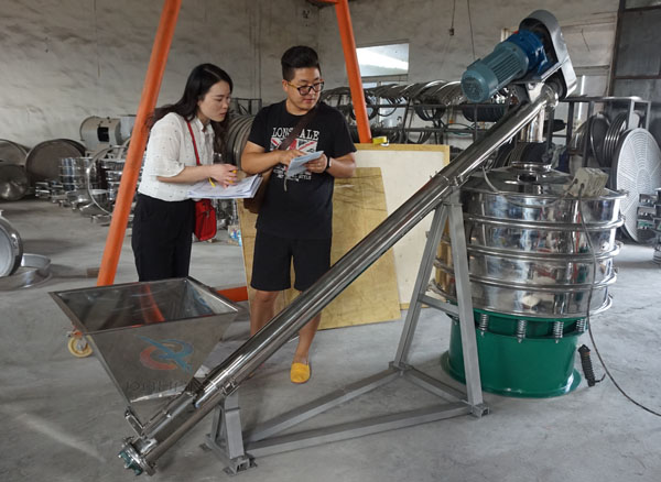 螺旋輸送機(jī)為不銹鋼材質(zhì)跟旋振篩配套使用,進(jìn)料口端加不銹鋼料斗,方便進(jìn)料;該旋振篩為不銹鋼旋振篩,底桶為碳鋼材質(zhì),與物料接觸為不銹鋼材質(zhì)。
