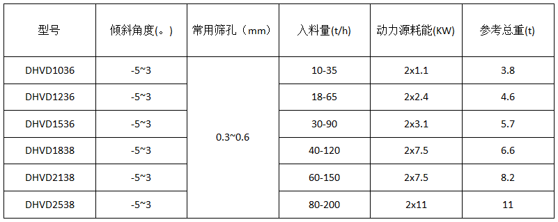 脫水振動篩參數(shù)表: