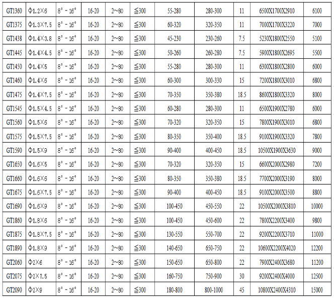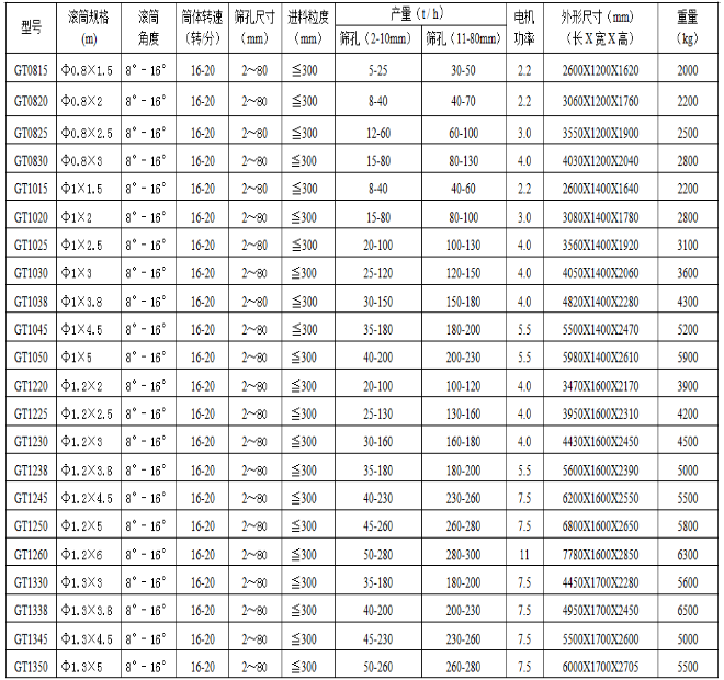 GTS系列礦用滾筒篩技術(shù)參數(shù):