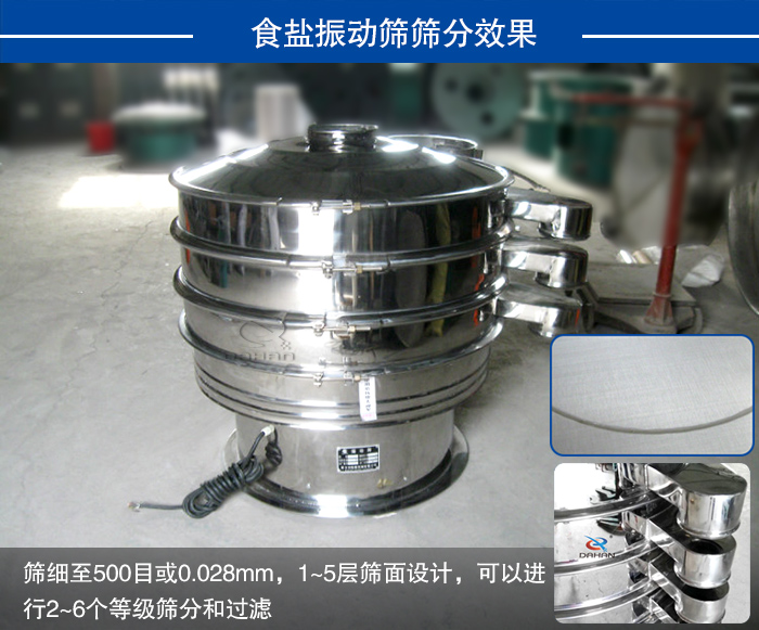 大漢食鹽振動(dòng)篩細(xì)至500目或0.028mm,1~5層篩面設(shè)計(jì),可以進(jìn)行2~6個(gè)等級篩分和過濾,保證了食鹽振動(dòng)篩的篩分量,并且大漢食鹽振動(dòng)篩整機(jī)采用304不銹鋼材質(zhì),振動(dòng)篩密封件材質(zhì)要選擇硅膠材質(zhì),可以保證食鹽在篩分過程中不被污染,進(jìn)一步提高了食鹽的篩分精度。