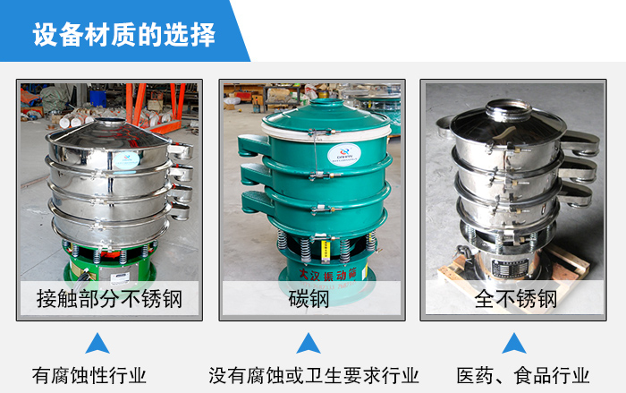 根據(jù)物料性質(zhì)與生產(chǎn)環(huán)境不同,三次元旋振篩所用材質(zhì)也不相同,三次元旋振篩常用材質(zhì)為Q235碳鋼和304不銹鋼材質(zhì),對(duì)于沒有腐蝕或衛(wèi)生要求的選擇碳鋼即可,而針對(duì)醫(yī)藥、食品行業(yè)需要選擇304不銹鋼材質(zhì)的設(shè)備,而如果腐蝕性強(qiáng)就需要選擇316L不銹鋼材質(zhì)。