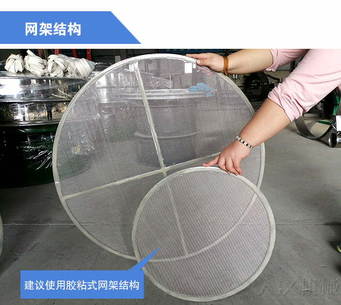 旋振篩設(shè)備常見的網(wǎng)架結(jié)構(gòu)有老松式網(wǎng)架、子母網(wǎng)、膠粘網(wǎng)架三種,而就漿液物料的生產(chǎn)來說使用老松式網(wǎng)架或子母網(wǎng)生產(chǎn)時(shí)由于篩面承受的激振力過強(qiáng),所以當(dāng)漿液進(jìn)入篩面在強(qiáng)大的激振力作用下就會(huì)跳起引起跳漿問題。對(duì)于是網(wǎng)架結(jié)構(gòu)的問題建議使用膠粘式網(wǎng)架結(jié)構(gòu)。該結(jié)構(gòu)篩網(wǎng)可以篩面運(yùn)行軌跡柔和漿液物料進(jìn)入篩面不會(huì)引起漿液的跳動(dòng)從而解決跳漿問題。