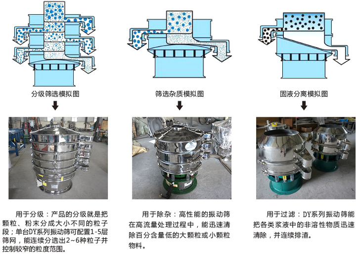 在篩箱的振動(dòng)作用下,物料在篩面上產(chǎn)生螺旋狀運(yùn)動(dòng)。較大的物料被離心力推向篩箱的外側(cè),而較小的物料則逐漸通過(guò)篩孔,落入下方的出料口。篩孔的大小可以根據(jù)物料的要求進(jìn)行選擇,以實(shí)現(xiàn)不同粒徑的篩分和分級(jí)。